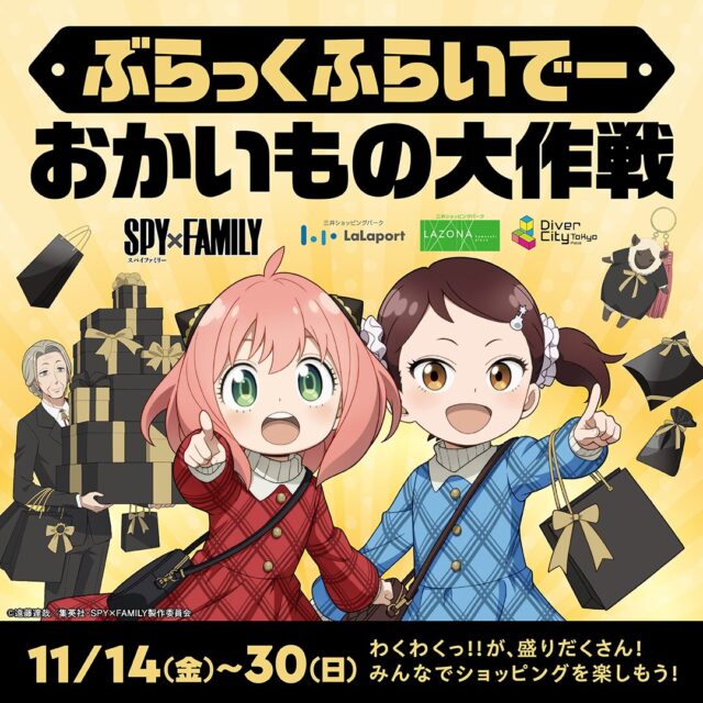 ぶらっくふらいでー おかいもの大作戦|11月14日(金)〜11月30日(日)ダイバーシティ東京プラザでSPY×FAMILYコラボ企画開催!
