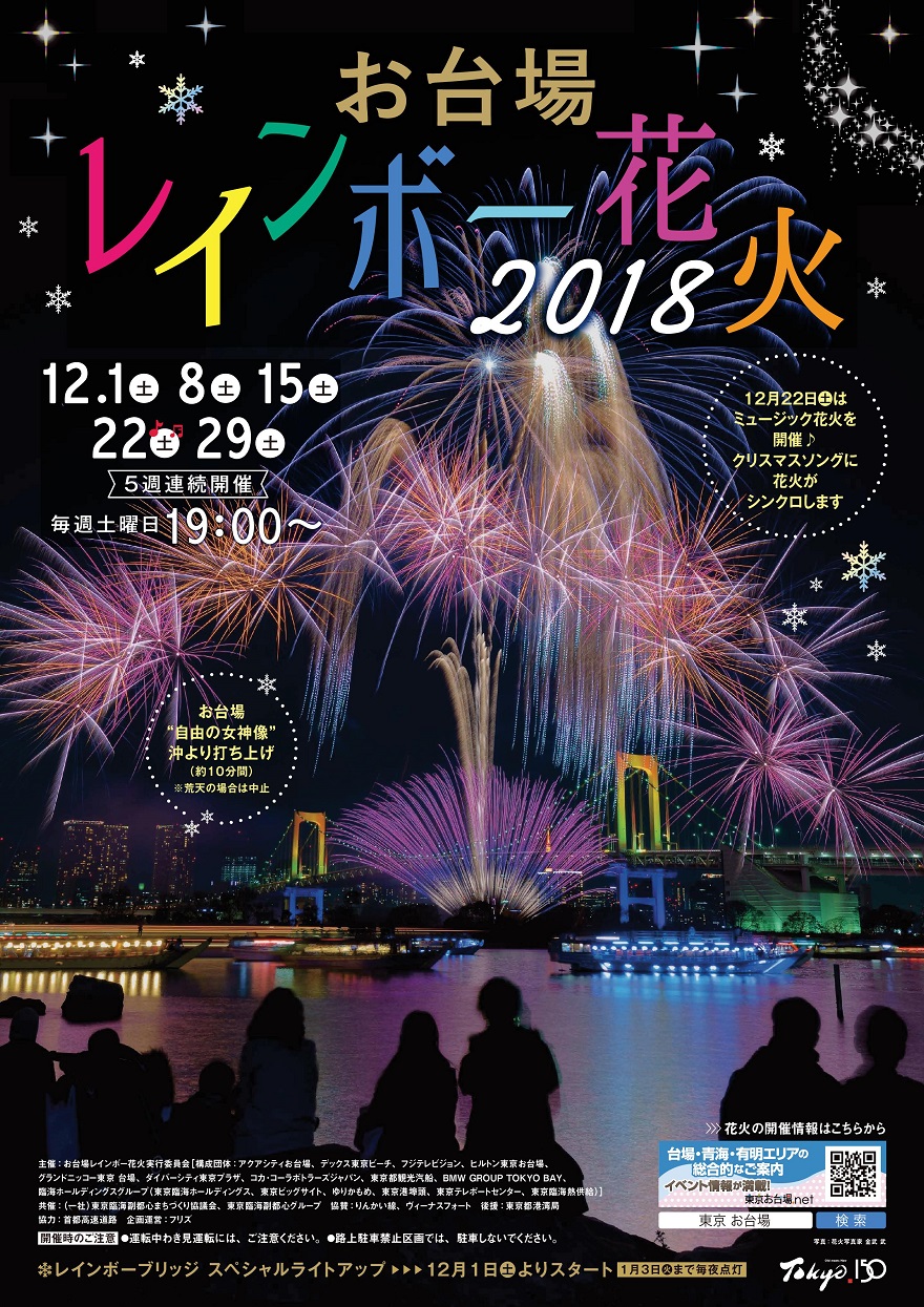 お台場”自由の女神”沖より打ち上げ!お台場レインボー花火2018 気になるイベントをシェア Share on X (Twitter) Share on Facebook Share on Email Share on SMS公式サイト [browser-shot width=”336″ url=”https://www.tokyo-odaiba.net/rainbow/hanabi2018.html”] お台場レインボー花火2018日程2018年12月 1(土)お台場レインボー花火2018 8(土)お台場レインボー花火2018 15(土)お台場レインボー花火2018 22(土)お台場レインボー花火2018 29(土)お台場レインボー花火2018時間19時から会場お台場自由の女神像沖カテゴリー気になるイベントをシェア Share on X (Twitter) Share on Facebook Share on Email Share on SMS